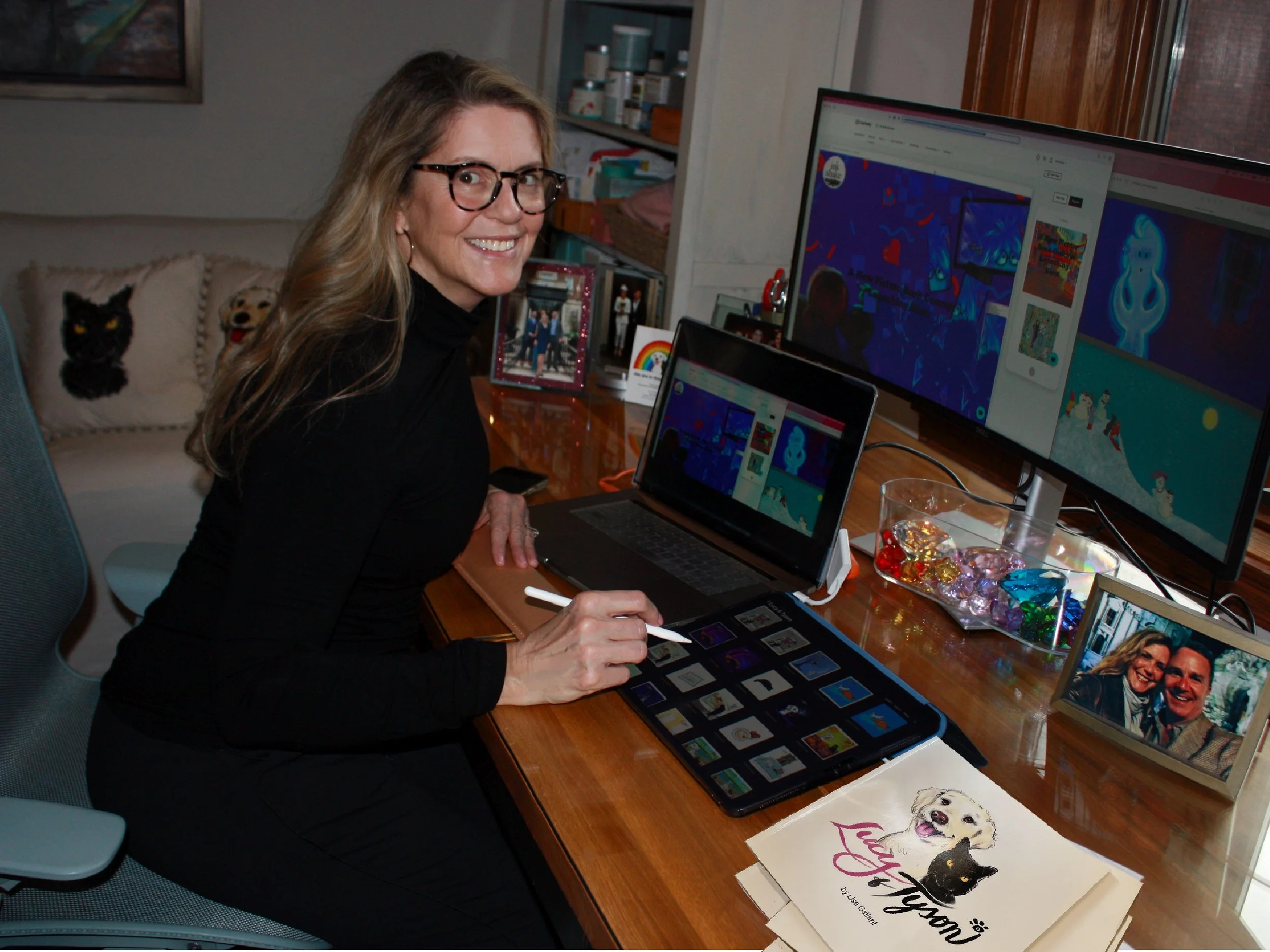 “ Lise Gallant (b. March 28, 1964) is a Canadian artist based in Westmount, Quebec. Gallant works in drawing, acrylic painting and is well known for her comic series Lucy and Tyson, a humorous series about a black cat and white golden doodle and their day in the life antics. Lucy and Tyson is featured weekly in the Westmount Independent,and snippets can also be found on social media, where Gallant regularly engages with her fans.allant started her career as a graphic designer in the 80s, a time when Adobe Creative Suite was barely an idea. This meant typography, art and advertisements had to be all done by hand. It’s Gallant’s extensive skill and experience that makes her work today so impeccable.